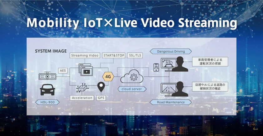 「リアルタイムストリーミング技術」は、複数の運行車両から任意に選択した車両に設置されたカメラの映像を、LTE回線により遠隔地にてリアルタイムで把握することが可能です。エコモットが提供する「HDL-900」は、この機能を提供する業界初(注1)のLTE対応高性能テレマティクス端末です。
