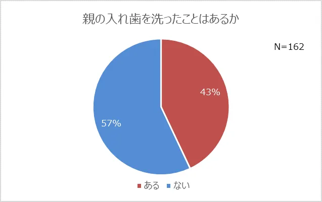 さらに、親の生活をサポートする中で、入れ歯を洗ったことがある人は4割を超えることが判明しました。入れ歯だと口内のニオイが気になりやすいため、日々入れ歯の洗浄を手伝っている人が多いのでしょうか。