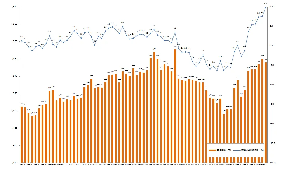 2018年11月度の派遣平均時給は1,556円。 6ヶ月連続で前年同月比プラス、 オフィスワーク系で過去最高を記録。
