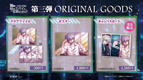 そしてこの度、そんな話題のイベントオリジナルグッズの第三弾を発売することが決定いたしました。ラインナップは「キャンバスボード」、「クリアファイル」、「ポスター」の全3種。9月に公開した“伝説のホスト”渚カヲルの新ビジュアルを使用した、ファン必見のデザインです。