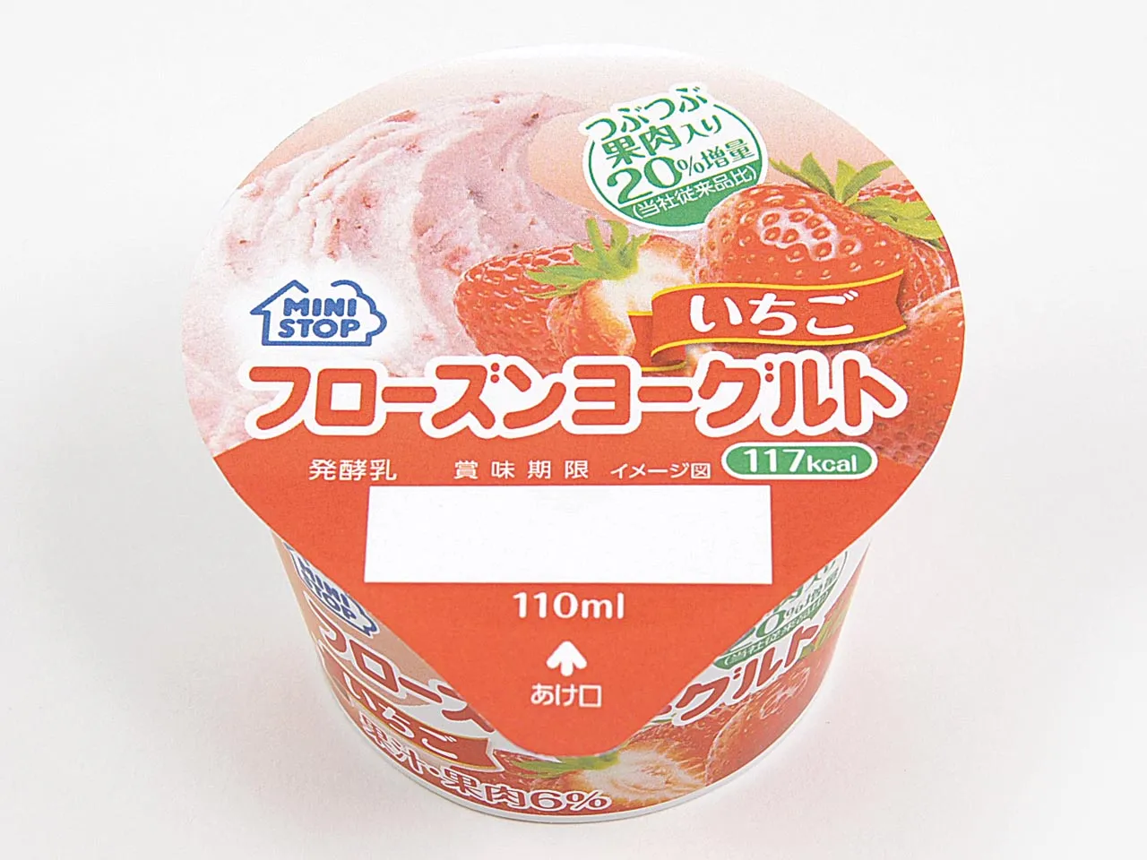 1980年の創業当時より販売を続けるミニストップのロングヒット商品「フローズンヨーグルト」のいちごフレーバーです。昨年と比べ、いちご果肉と果汁を約20%増量し、より“いちご”のおいしさを楽しめるように仕上げました。【生きた乳酸菌入り】【117kcal】