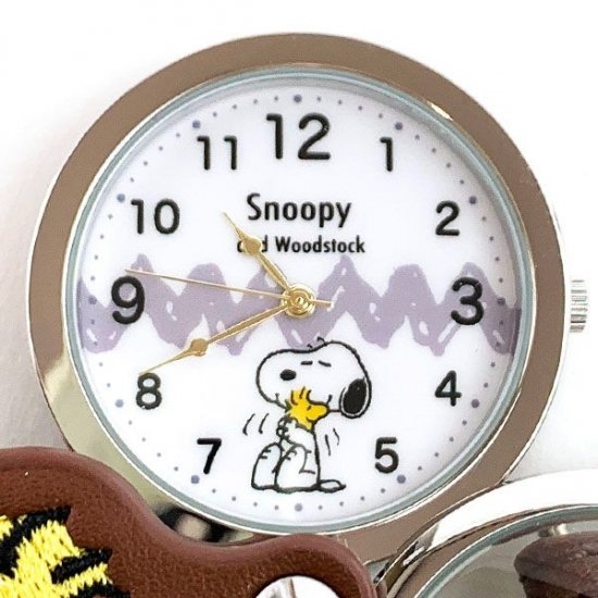 実は、懐中時計の文字盤のスヌーピーとモコモコ部分のお顔が同じなんです♬数字の上に乗るウッドストックがまたかわいい!