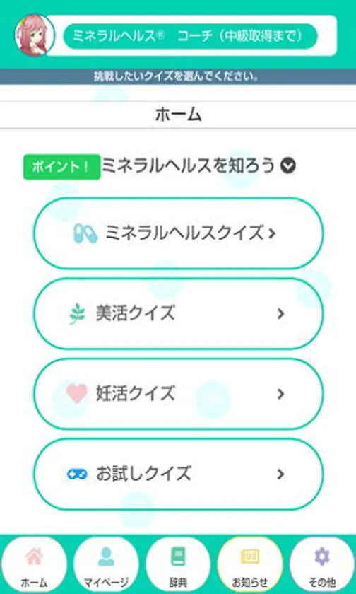 美活や妊活の成功イメージを健康課題として意識することは世の中に広く周知されてきましたが、その解決策については語られないまま放置されている状態でした。当WEBアプリは、その具体的解決策に臨床栄養学的なアプローチである「ミネラルヘルス(R)」を示し、ミネラルヘルス(R)の普及啓発・認知向上とともに、コーチングプログラムを提供し、ミネラルヘルス(R)を指導する人材育成に努めます。