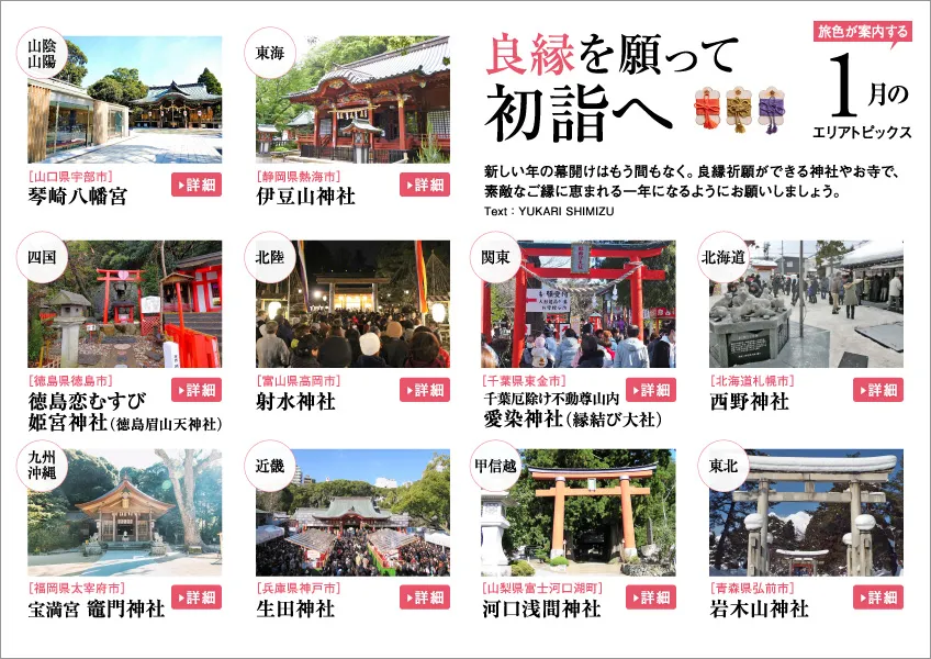 ■ 旅色が案内する 1月のエリアトピックス / 良縁を願って初詣へ