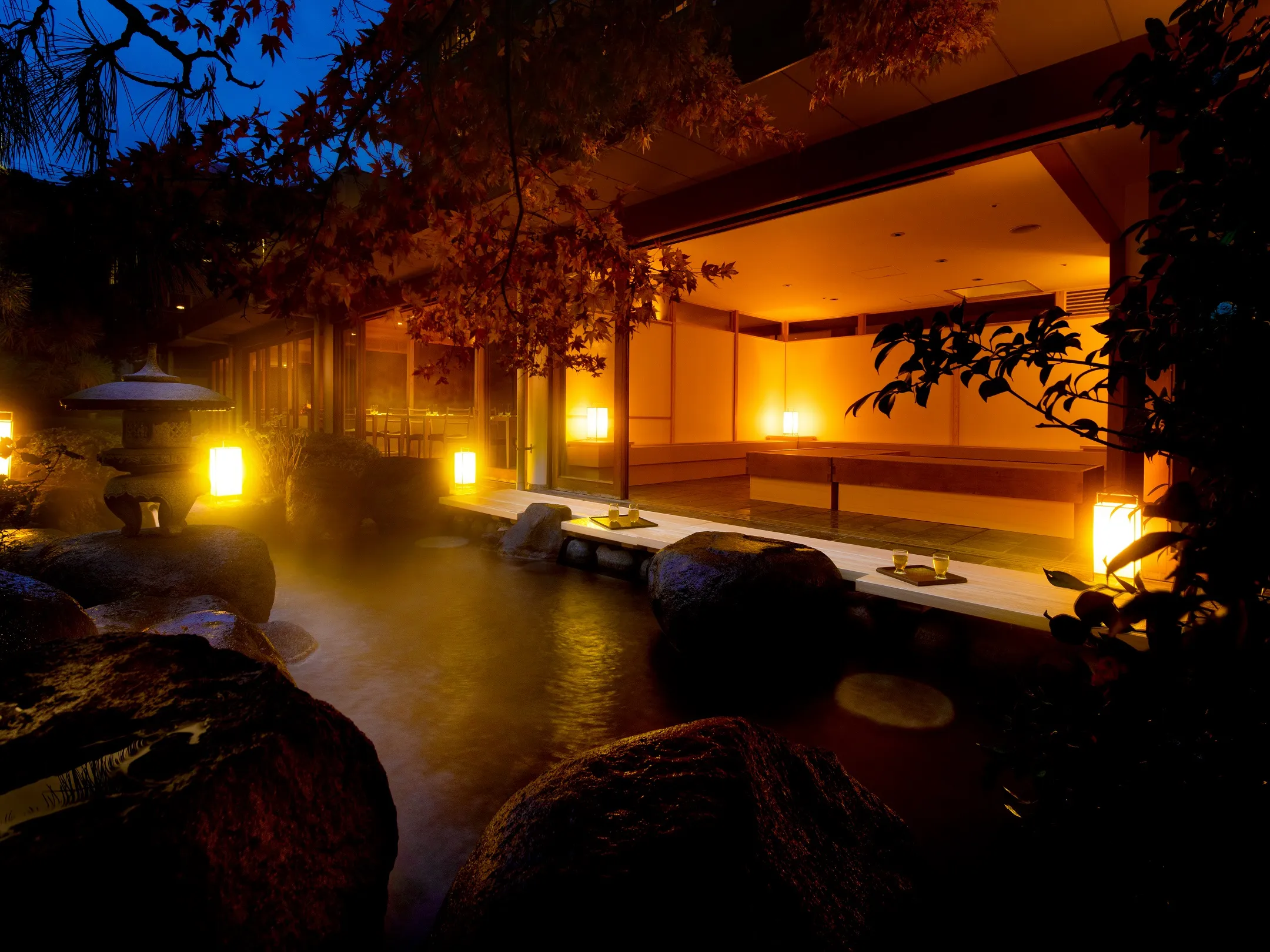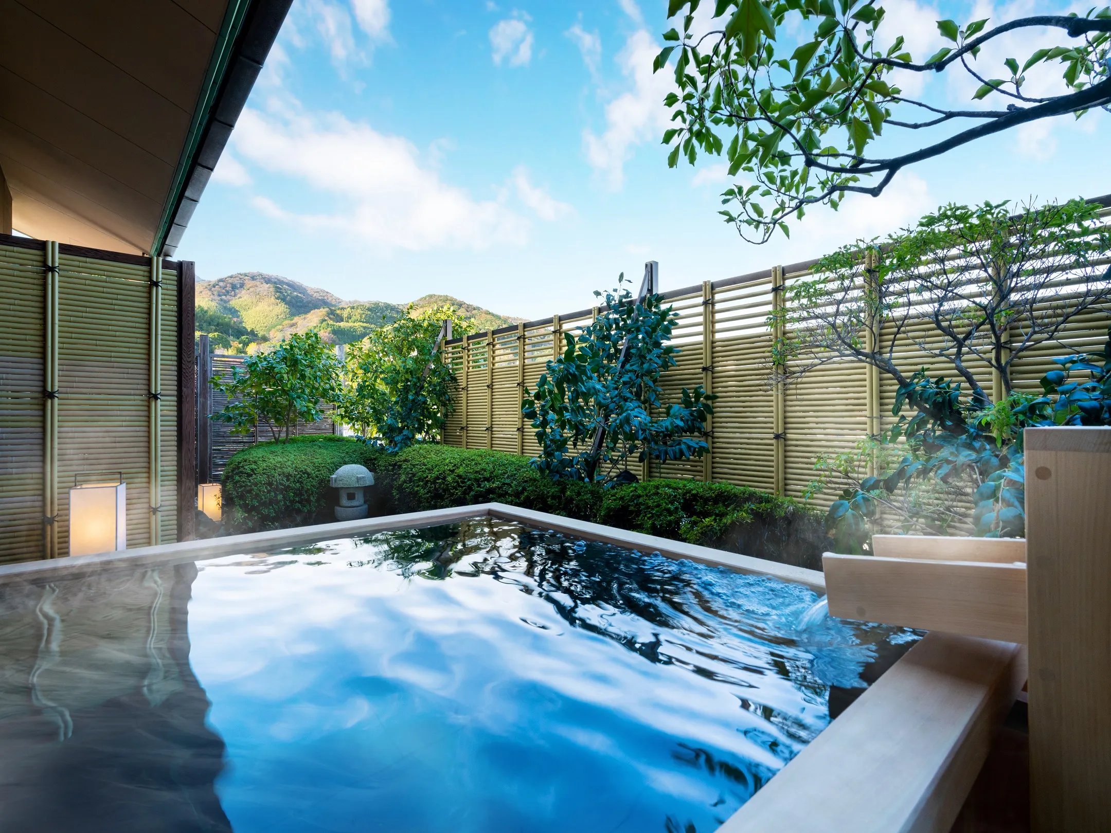 豊富な湯量と泉質を誇る伊東温泉に位置し、湯殿やプール、足湯など存分に温泉を楽しめる宿です。伊勢海老、鮑など伊豆の豊かな海の幸を味わう会席料理や四季折々の花を愛でることができる日本庭園が特徴的です。2018年12月に、大浴場や全客室をご当地部屋にリニューアル。