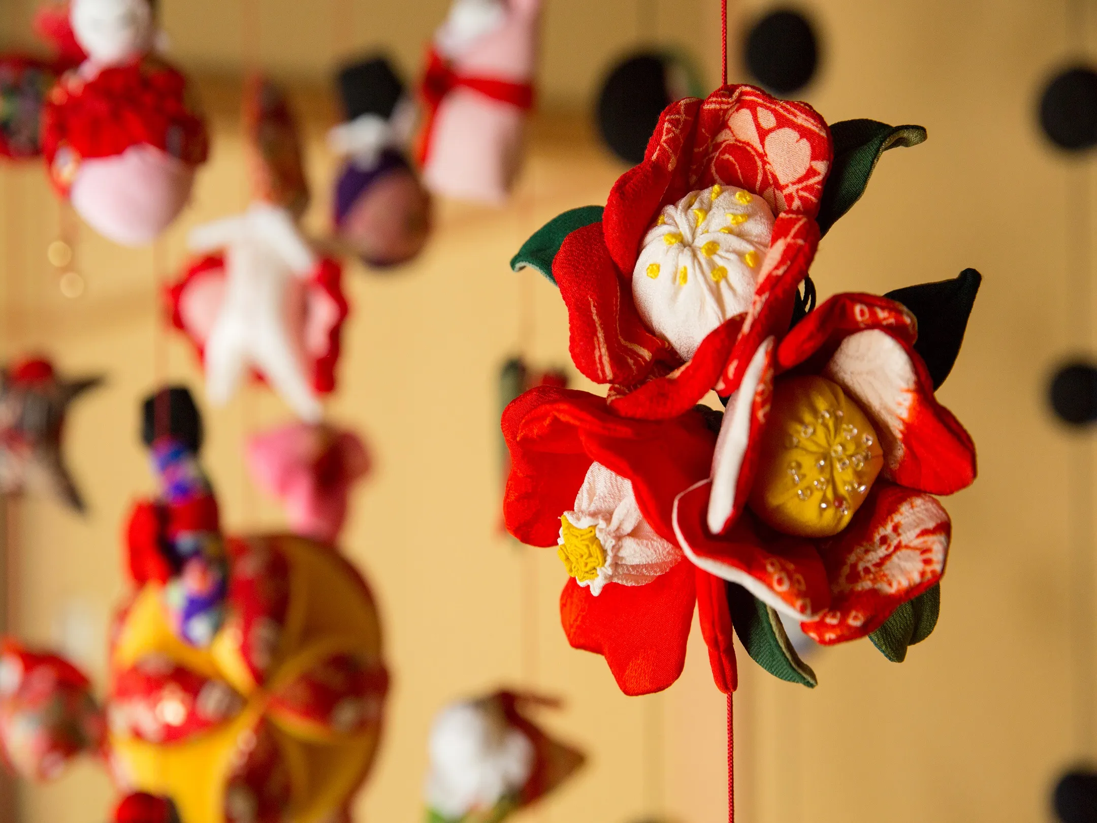 伊豆・稲取地方の「つるし飾り」は、子どもの成長を願って手作りの人形を飾る古くからの風習です。界伊東からほど近い伊豆・稲取地方では、「雛のつるし飾り」が古くからの風習とされており、福岡県柳川の「さげもん」と、山形県酒田の「傘福」とともに「日本三大つるし飾り」のひとつとして知られています。私達は、そんな伊豆の文化を残したい、という想いで創作・普及活動を行っています。親から子へ、子から孫へと引き継がれるつるし飾りを、私達はこれからも子供達へ引き継いでいきたいと思っています。