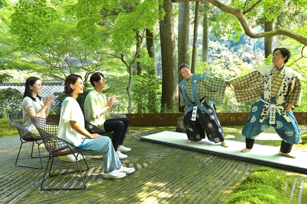 【星のや京都】新緑が木陰をつくる気持ちのよい庭で「新緑の青空狂言」2022年も開催|期間:2022年5月9日~6月13日の毎週月曜日
