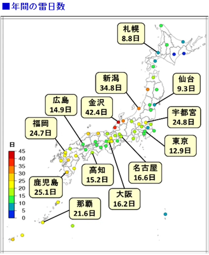 気象庁「雷の観測と統計」