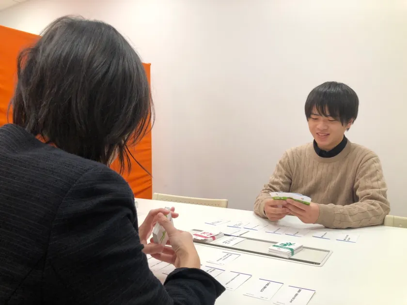 代表取締役の長井は、起業以前からライフワークの一環として学生向けに就職活動に関する講演を行っており、「何か議論が活性化するきっかけになるものはないだろうか」と模索していました。そこで、キャリアコンサルタントが使用していたツールにヒントを得て、自ら足で稼いだデータを踏まえ学生向けにアレンジした『価値観カード』を作成。長井は、口下手な学生がカードを介して明け方まで盛り上がる場面を何度も目の当たりにし、採用の場面にも転用できる手応えを感じていました。