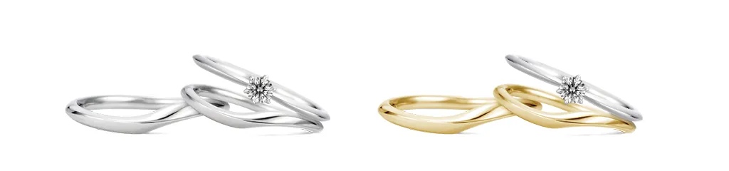 画像右 婚約指輪:ハピネスクラウン3(プラチナ950)、結婚指輪:アリエッタ2(K18イエローゴールド) 240,000円