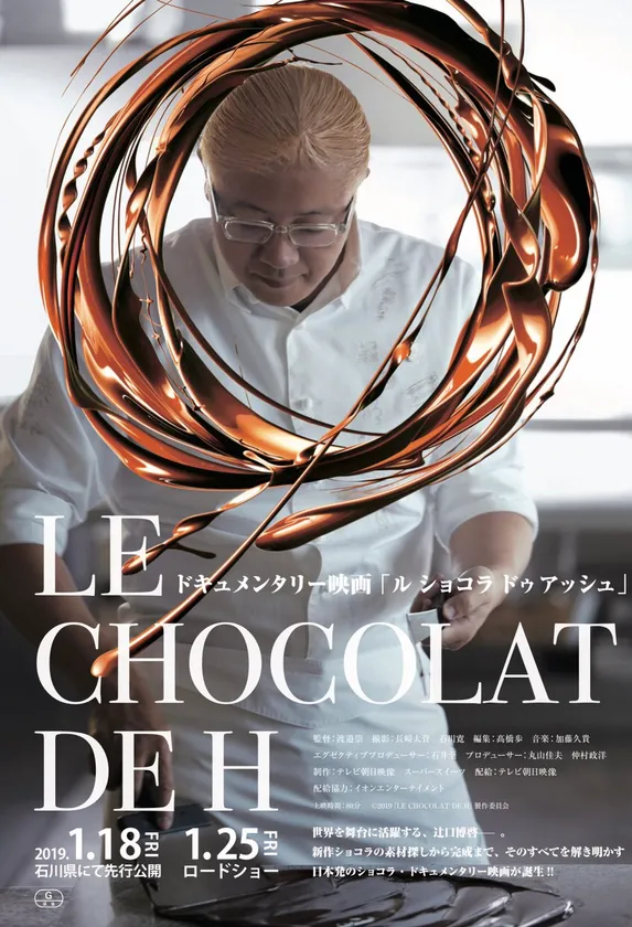 ショコラティエとして世界を舞台に活躍する辻口博啓の素材探しから新作完成までに密着した日本発のショコラ・ドキュメンタリー映画『LE CHOCOLAT DE H(ル ショコラ ドゥ アッシュ)』を2019年1月18日(金)石川県のイオンシネマにて先行公開、1月25日(金)から関東・中部エリアのイオンシネマにて公開いたします。大人気子役が演じる再現ドラマや、ドローン・超ハイスピードカメラなどの最新撮影技術を用いた映像等、本映画の「見どころ」および関東・中部エリアでの公開劇場が決定しましたので、お知らせいたします。