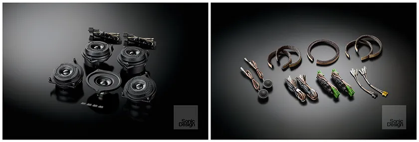 本製品は(1)純正ドアスピーカーグリル周囲に装着する「アコースティックコントロールエレメント」(フロント左右/リア左右/センター)、(2)ドアミラー裏の純正トゥイーターグリル内に装着する「18mmマイクロファイバー・ドームトゥイーター」(フロント左右)、(3)付属トゥイーターと純正フロントドアスピーカーのためのネットワーク回路および音質補正回路を一体化した「アコースティックコンペンセーター」、(4)純正ウーファー(運転席/助手席足元)から再生される不要な中高音をカットする「アディショナルコンペンセーター」の4要素で構成されており、純正のサウンドシステムやドアスピーカー、ウーファーを活用しながら簡単・確実な音質向上を図ることが可能。取り付けに際して車両側の加工を必要とせず、接続もカプラーオンで行えるため、将来お乗り換えの際に車両の資産価値を損なう心配がありません。製品の取り付けは全国のソニックプラスセンターやカーオーディオ専門店はもちろんのこと、最寄りのメルセデス・ベンツ正規販売店*にも安心してご依頼いただけます。
