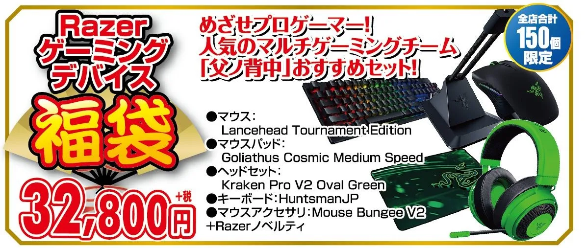3.Razerゲーミングデバイス福袋 32,800円(税別)<全店合計 150 個>