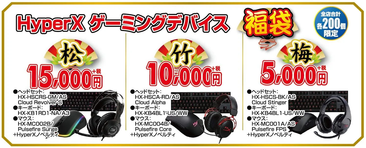 4.HyperXゲーミングデバイス福袋 「松」 15,000円(税別)<全店合計 200個>