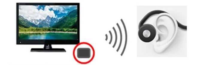集音器をテレビの近くに置く事でテレビの音が耳元の骨伝導ヘッドホンから聞こえ