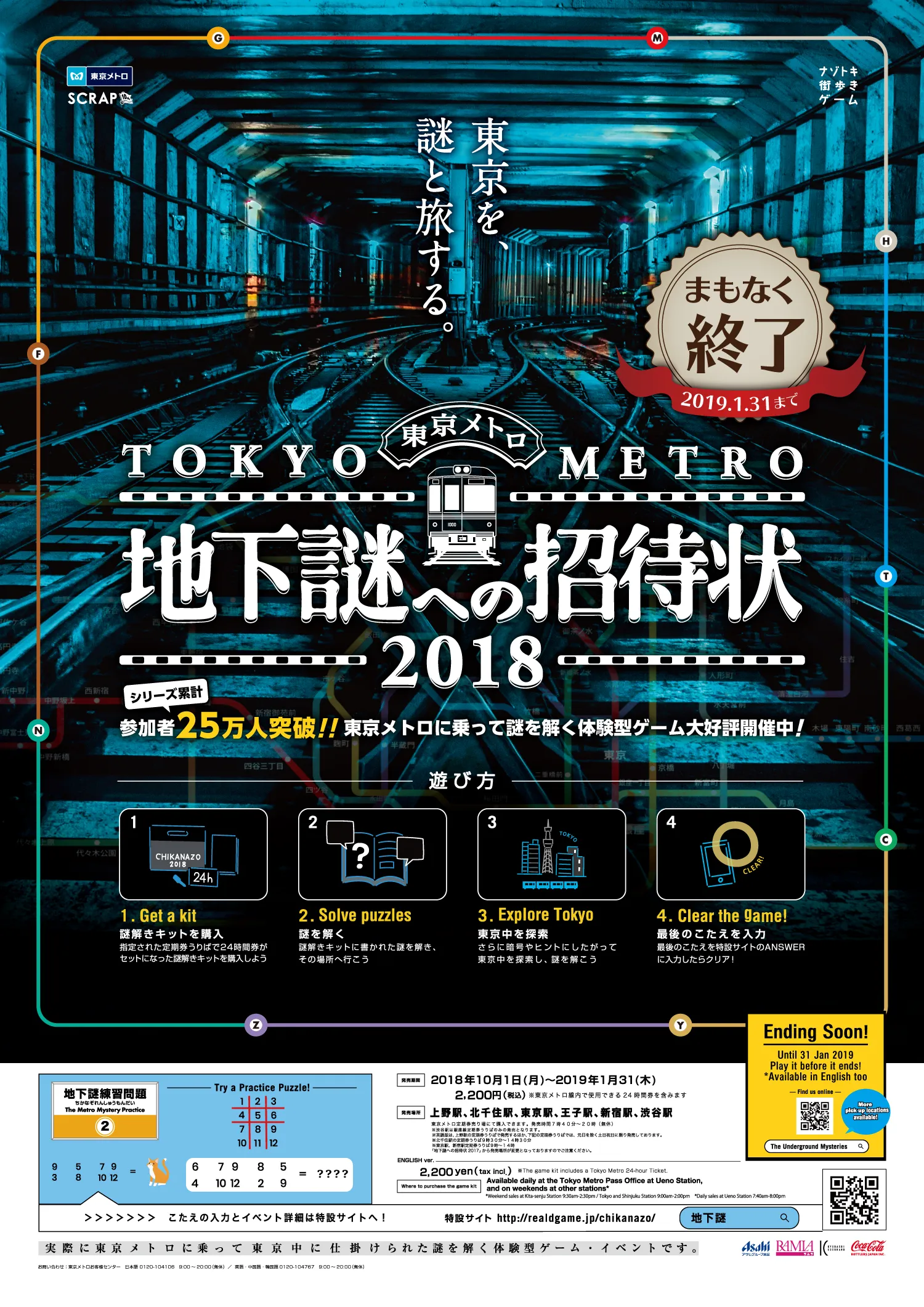 「地下謎」シリーズ累計動員数25万人を突破! 東京メトロで開催中のナゾトキ街歩きゲーム 「地下謎への招待状2018」終了迫る!!