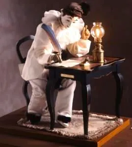オルゴールの音色と共に、手紙を書く仕草をするピエロ。19世紀末にパリの工房で作られたものを、その工房を受け継いだM・ベルトラン(スイス、1928年-1999年)が、現代に蘇らせた。