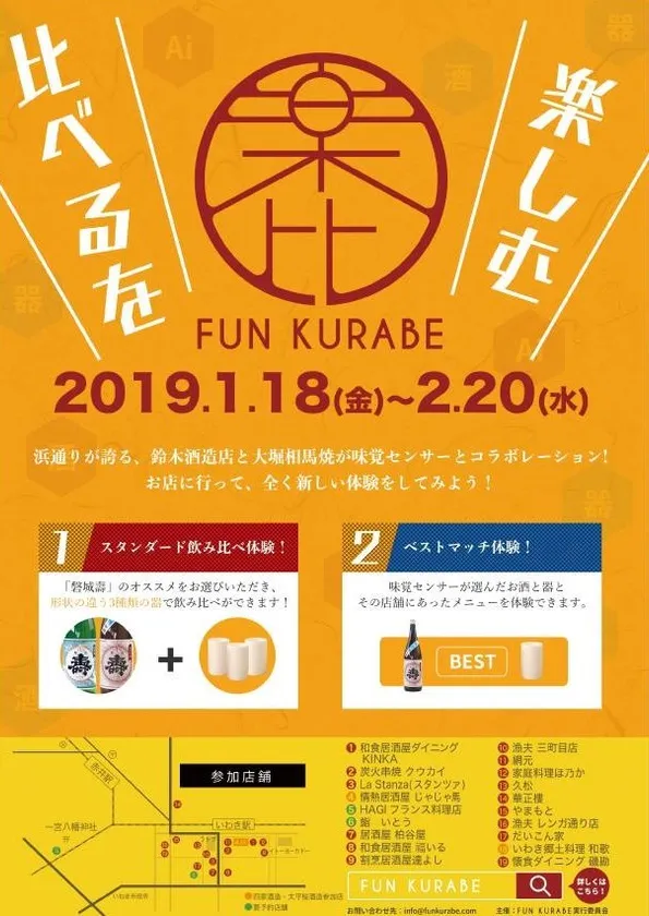 世界初!AI味覚センサーによる「日本酒×器×食」の ペアリングを楽しむグルメイベント「FUN KURABE」 1月18日~2月20日福島県いわき市で開催