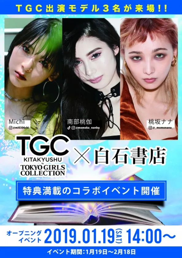 北九州市に書店を4店展開する、有限会社白石書店(本社:福岡県北九州市、代表取締役:白石隆之)は、TWIN PLANET社のプロデュースによる史上最大級のファッションフェスタ「東京ガールズコレクション」が展開する地方創生プロジェクト「TGC KITAKYUSHU」とのコラボイベントを2019年1月19日(土)より実施します。