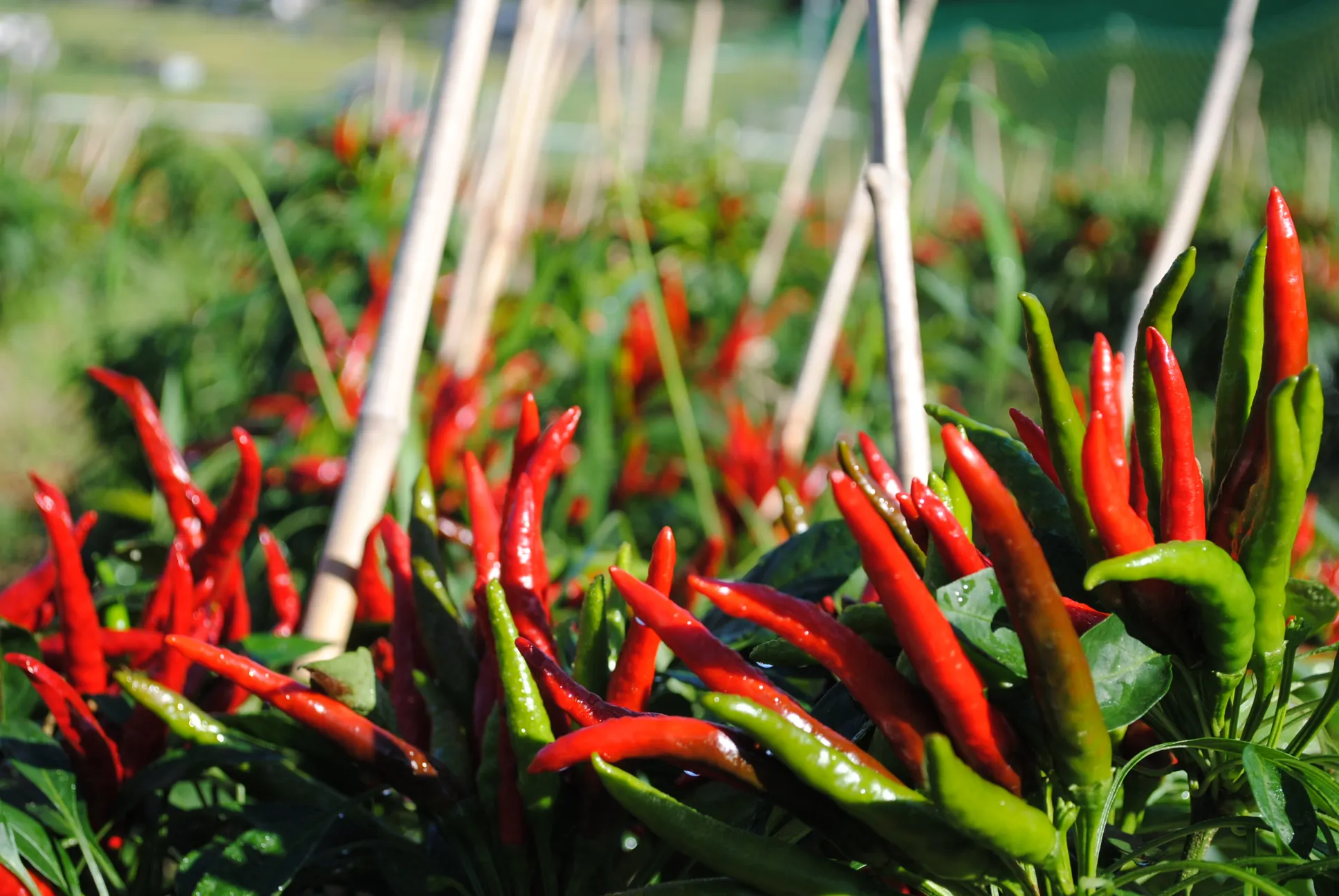 坂本農園では、奈良県東部・大和高原の畑で無農薬栽培の唐辛子を手作りで大切に育てています。