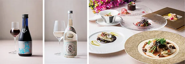 「大古酒 長久 貴醸酒」:フォアグラとのマリアージュをお愉しみいただける、甘くて濃厚な琥珀色の日本酒。