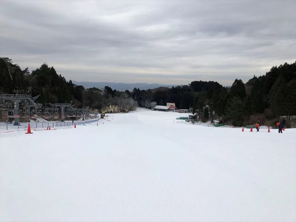 今シーズンは12月上旬に記録的な気温上昇に見舞われ、メインゲレンデの営業を中止するなど、ゲレンデメイクに苦戦を強いられました。しかし、年末年始の寒波到来により、『人工降雪機スノーファン』を稼働することができ、1日に約240t造雪できる『人工造雪機ICS(アイスクラッシャーシステム)』と併せてゲレンデメイクに努めた結果、1月12日(土)にメインゲレンデ全面滑走可となり、リフト全3基を稼働できる体制が整いました。これにより、1月12日(土)~14日(月・祝)の3連休より万全の状態でお客様にウィンタースポーツ&レジャーを満喫していただけます。