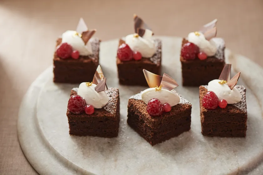 今回のタイアップメニュー『ショコラスクエア』は、お菓子作り初心者でも、楽しみながらおいしく作れる、かわいい手のひらサイズのチョコレートケーキです。レッスンでは、「明治ミルクチョコレート」をふんだんに使ったしっとりとしたスポンジ生地に、フランボワーズジャムを挟んで重ねたケーキに、キメ細やかに泡立てた生クリーム・フランボワーズ・レッドカラント・金箔をトッピングして仕上げます。作ったケーキは、1人4個お持ち帰り。レッスンで手作りを存分に楽しんだあと、作ったケーキを持って、大切な方に会いに行くのはいかがでしょうか?