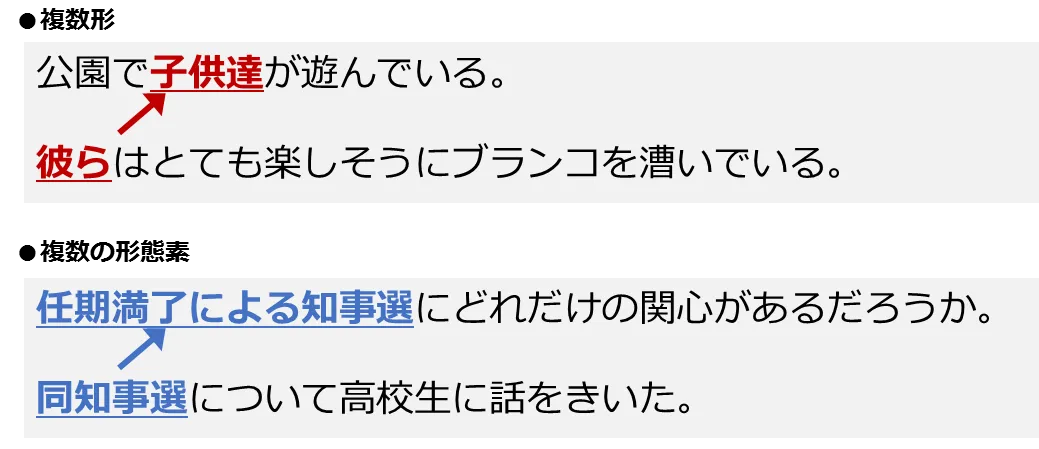 従来β版を提供してきましたが、今回の正式版にて、以下の例のように指示語が複数形(彼ら)の場合や、指示語のさす対象が複数の単語から成る(任期満了による知事選)場合などのさまざまな照応関係について認識できるようになりました。