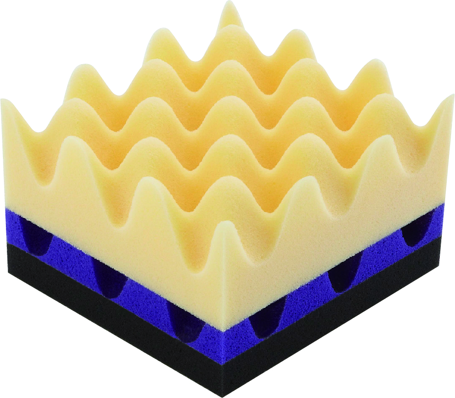 凹凸構造を上層として、中層、下層の「3層構造」になっています。上層、中層には「高弾性ウレタン」を採用し、理想的な寝姿勢をサポートするだけでなく、自然な寝返りを促します。