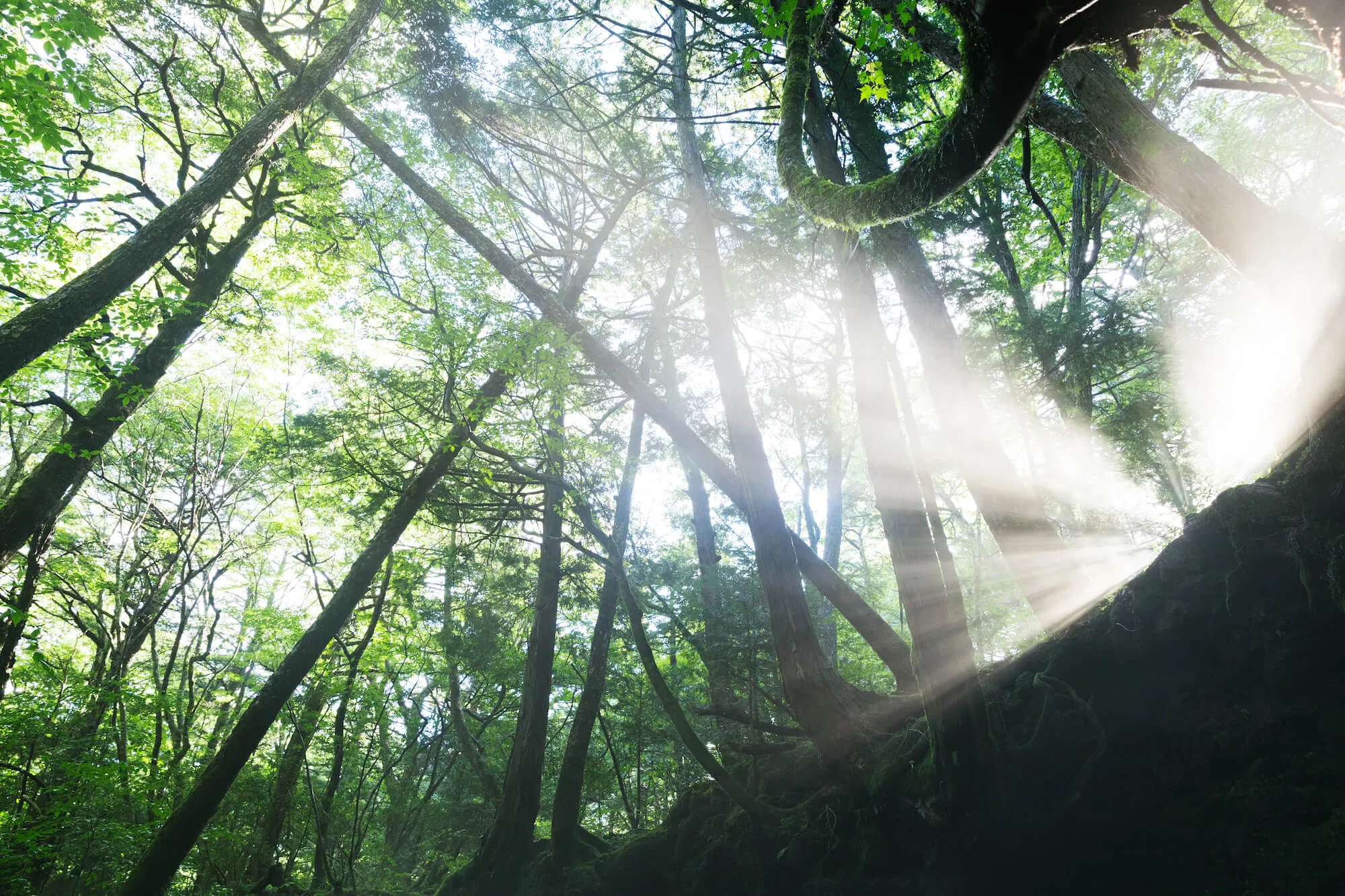 星のや富士から車で15分の場所に広がる「青木ヶ原樹海」。上空から青木ヶ原を眺めると、木々が風になびく様子が、海原でうねる波のように見えることから、「樹海」と呼ばれています。一般に、ミステリアスなイメージがある樹海ですが、実際は生命力豊かな自然が広がる、とても美しい場所です。そこで、樹海の奥深い魅力を伝え、発見と感動を得られる特別な体験を提供したいと考え、当プログラムを開発しました。プログラムを構成する3つのアクティビティは空から始まり、湖へ、最後に樹海の中へ足を進める流れとなっています。徐々に樹海の内側へ近づくことで、樹海の成り立ちから、足元で育つ植物に至るまで、視点を変えながら学びを深めることができます。また、全てのアクティビティは、オリジナルプライベートツアーです。自分のペースで自然を楽しむことができる他、専門のガイドや星のや富士のスタッフによるサポートがあるため、不慣れなアクティビティでも安心して参加することができます。樹海の魅力をより多くの人へ伝え、記憶に残る体験を提供することを目指したプログラムです。