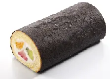 ・海苔に見立てた黒いシュー生地で巻かれたロールケーキ。