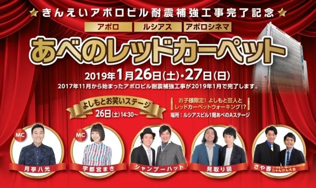 きんえいアポロビル耐震補強工事完了記念 「あべのレッドカ―ペット」 2019年1月26日(土)・27日(日)開催!