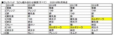 「カルボナーラ」はクックパッド株式会社(※1)の「たべみる(※2)」上で、「うどん」との組み合わせ検索値が近年高まっており、注目のアレンジメニューです。