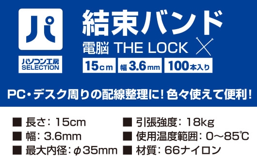 商品名: 結束バンド 電脳 THE LOCK 長さ15cm / 幅3.6mm /100本入り