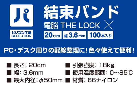 商品名: 結束バンド 電脳 THE LOCK 長さ20cm / 幅3.6mm / 100本入り