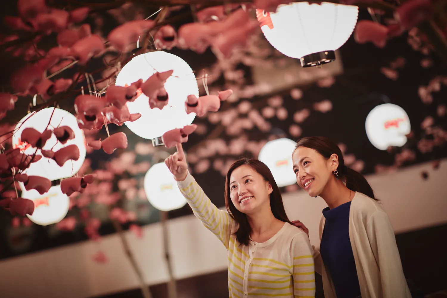 夜は、桜色の赤べこを飾りつけた赤べこ桜を、華やかにライトアップします。さらに、赤べこ桜の下では、地元民謡歌手が会津民謡を演奏し、より一層花見を盛り上げます。