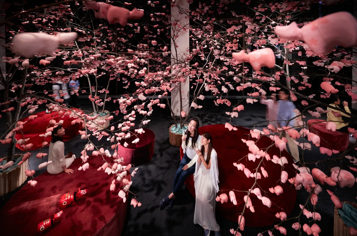 2,000体の赤べこが咲く!「赤べこ桜」の下でお花見体験