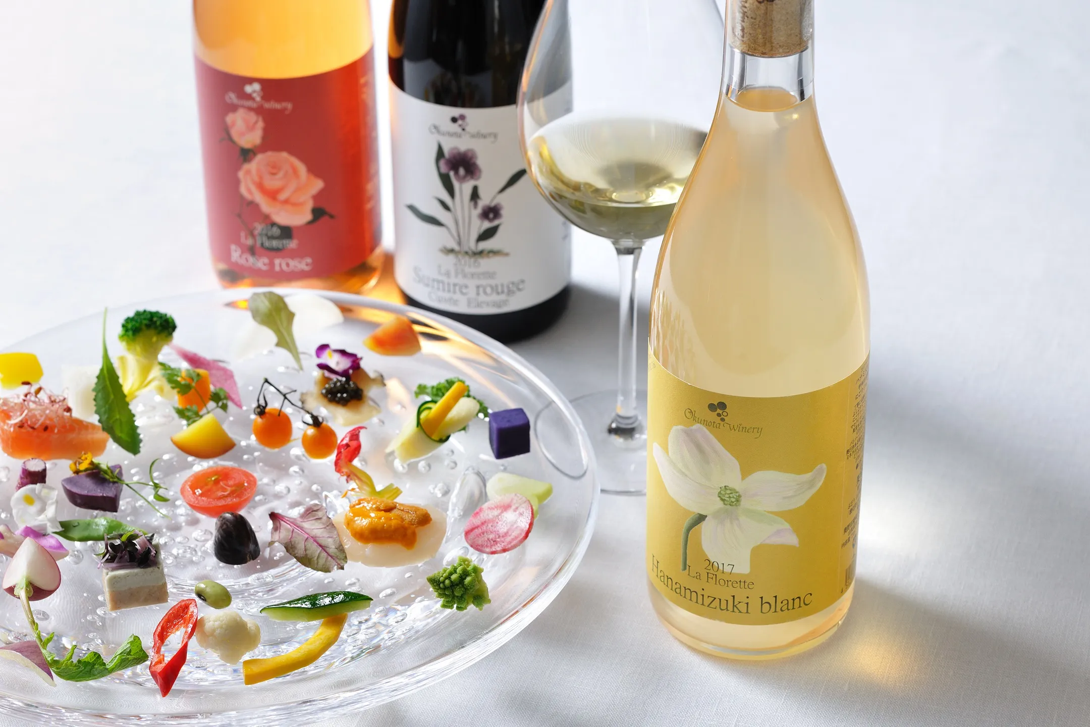 山梨県・長野県のワイン生産者を招き、料理とワインのマリアージュを堪能できる「メーカーズディナー」を毎月開催しています。5月は、ワインの名前やエチケットに、バラやスミレ、ハナミズキなどの花の香りや味わいのイメージを取り入れている山梨県甲州市の「奥野田ワイナリー」を迎えます。
