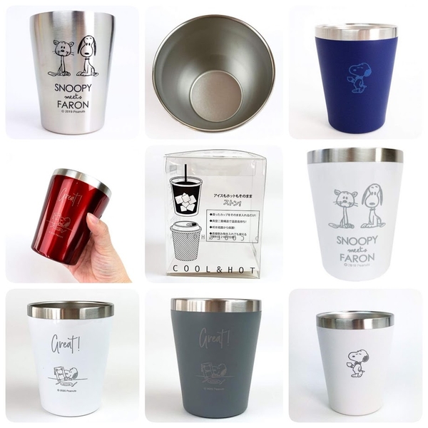 オフィスで浮かないおしゃれなスヌーピー♪一見普通のステンレスタンブラーですが、市販のカップがすっぽり入るサイズに作られているんです。