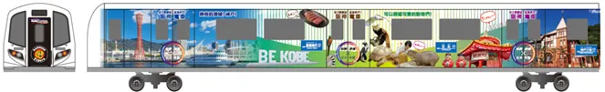普通用車両4両1編成に阪神沿線の観光地、見どころをちりばめたデザインのラッピングを実施