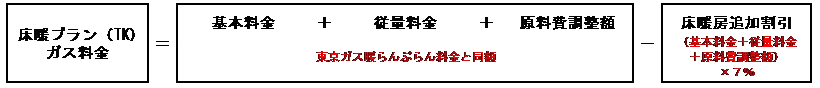 「ENEOS都市ガス」の料金プランは、「標準プラン(TK)(東京ガス一般料金対比▲4%)」、と「床暖プラン(TK)(東京ガス暖らんぷらん料金対比▲最大7%)」の2種類です。また、ENEOSカード・シナジーカードでお支払いただくとガス料金が割引になるなどのカード特典もご利用いただけます。さらに、電気も都市ガスもENEOSに切り替えていただいたお客様には、ガス料金最大