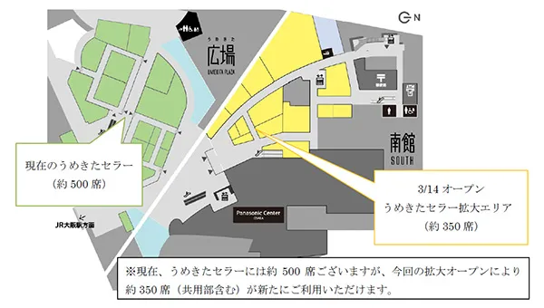 今回拡大オープンする「うめきたセラー」をはじめ、日本中・大阪中の名店が集積した「うめきたダイニング」(南館7~9階)や、深夜4時まで営業する“大人のたまり場”「ウメキタフロア」(北館6階)といった個性的な飲食ゾーンは、開業以来たくさんのお客さまに支持されてまいりました。