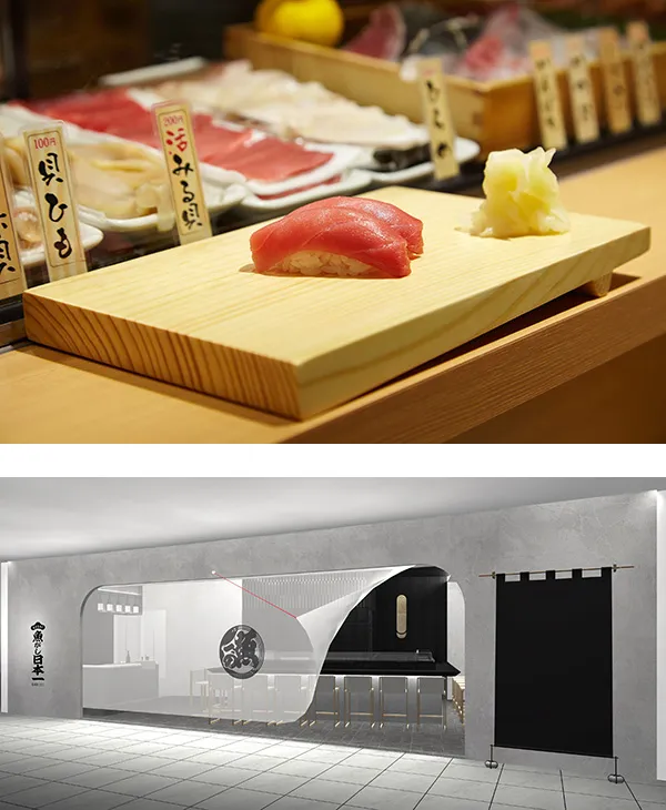 握りたての江戸前寿司を気軽に好きなネタを好きなだけ食べてほしいという想いから、200年前の「寿司屋台」をコンセプトに運営。注文を受けてからカウンター越しに板前が握る、鮮度の良いネタと温かいシャリが多忙なビジネスマンの食をサポートする元祖立喰い寿司。グランフロント大阪店では、“黒”をコンセプトにした店内で、江戸前寿司を手軽にお楽しみいただけます。ランチタイムは時間を気にせずサクッと立ち寄れる立ち食いスタイルでのご提供。小腹を満たしたいときにも1貫75円からとリーズナブルにプチ贅沢をお楽しみいただけます。ディナータイムには着席型でゆったりとお食事をお楽しみいただけます。寿司の他には夜だけの揚げたての天ぷらや自家製の茶わん蒸しなど、美味しいお酒とともにご堪能ください。