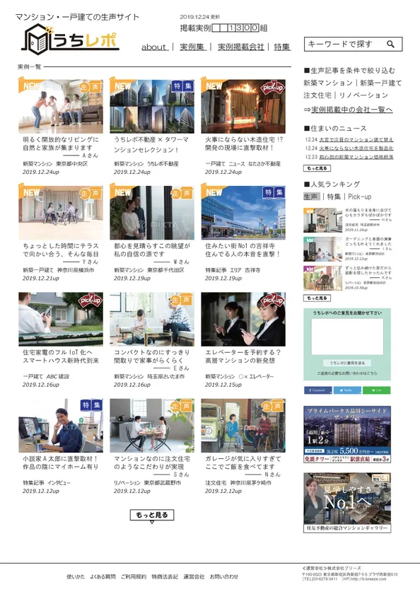 住まいを考え始めた人たちが求める情報は、概ね「物件スペック」「ノウハウ」「購入者の生声」に集約されます。住まいを考え始めた人たちが求める情報は、概ね「物件スペック」「ノウハウ」「購入者の生声」に集約されます。しかし、ノウハウ記事や物件情報はネット上にあふれていますが、購入者の生声だけが探しにくいのが現状。どんな人たちがどんな家を買って、あるいは建てて、どんな暮らしを実現しているのか…といった購入者の“生声”を調べるには、個社ごとのホームページから入り手間がかかります。