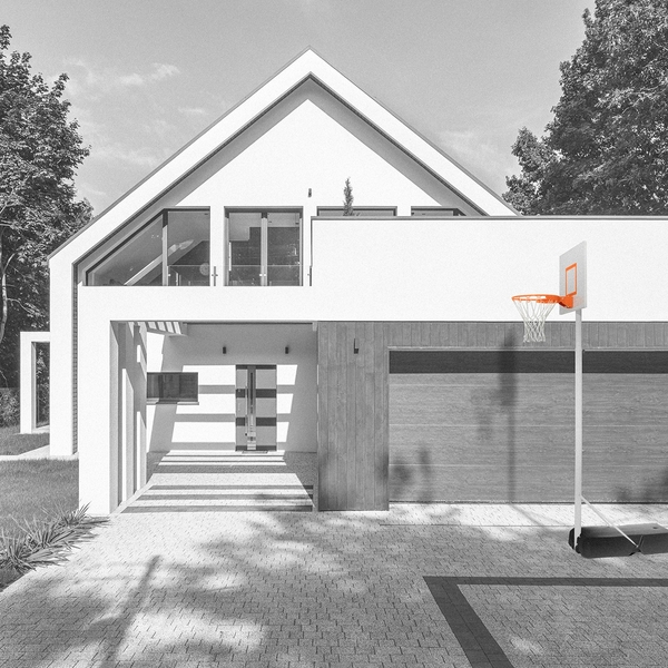 「バスケットゴールは欲しいけれど、家の外観は損ねたくない」という方に選ばれています。シンプルで品のあるデザインは、景観と調和するだけでなく、住まいをスタイリッシュに引き立てる「ランドマーク」となります。