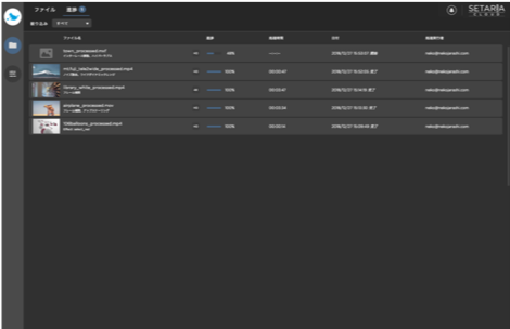 処理進捗一覧:映像の処理履歴や処理中の項目を一覧で管理できます。