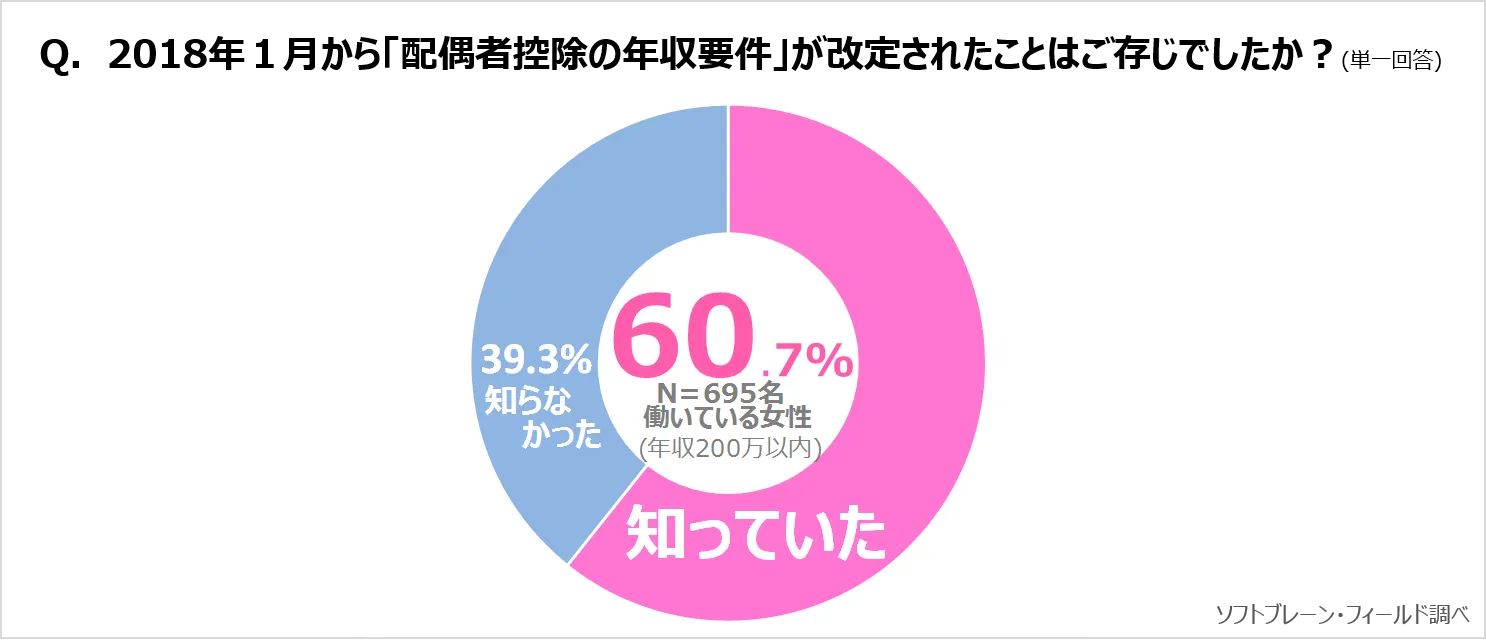 配偶者控除の年収要件の拡大については、働く女性の6割以上が「知っている」と回答し、高い認知度となりました。