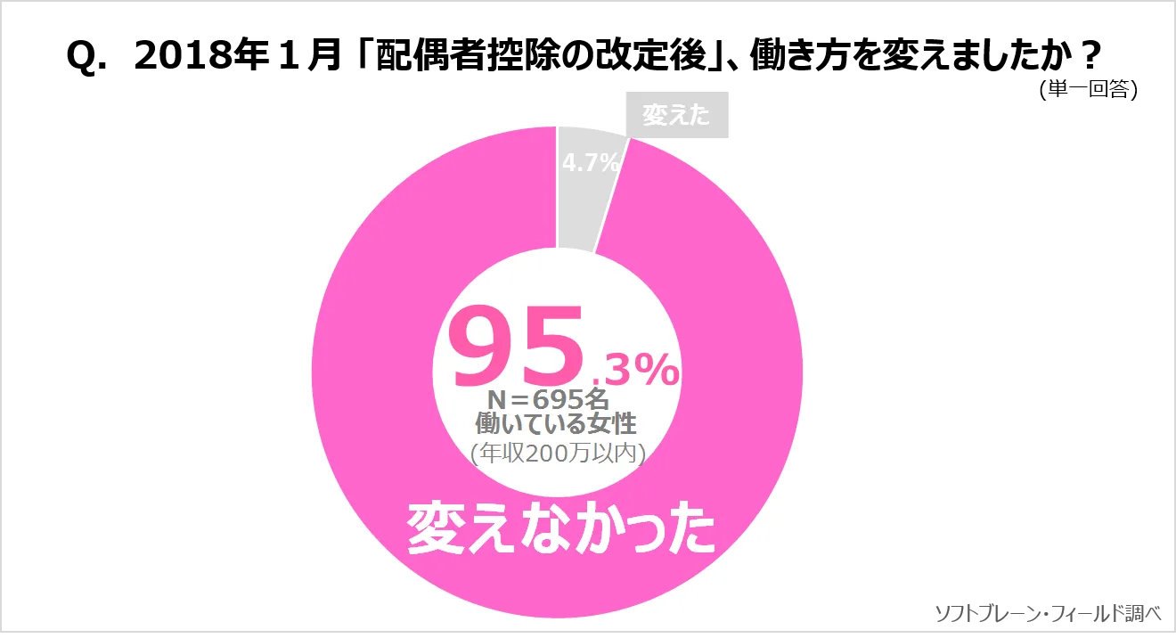 昨年2018年1月から、配偶者控除の年収上限が103万円から150万円に拡大されたことにより、主婦の方の働き方に変化はあったのでしょうか。フィールド・クラウドソーシング事業を展開するソフトブレーン・フィールド株式会社(本社東京都港区、代表取締役社長:木名瀬博)が推進するサステナブル∞ワークスタイルプロジェクト(ライフステージが変わっても持続可能な働き方※1)第9回目は、「《働く女性》働き方に関する意識調査」を実施しました。