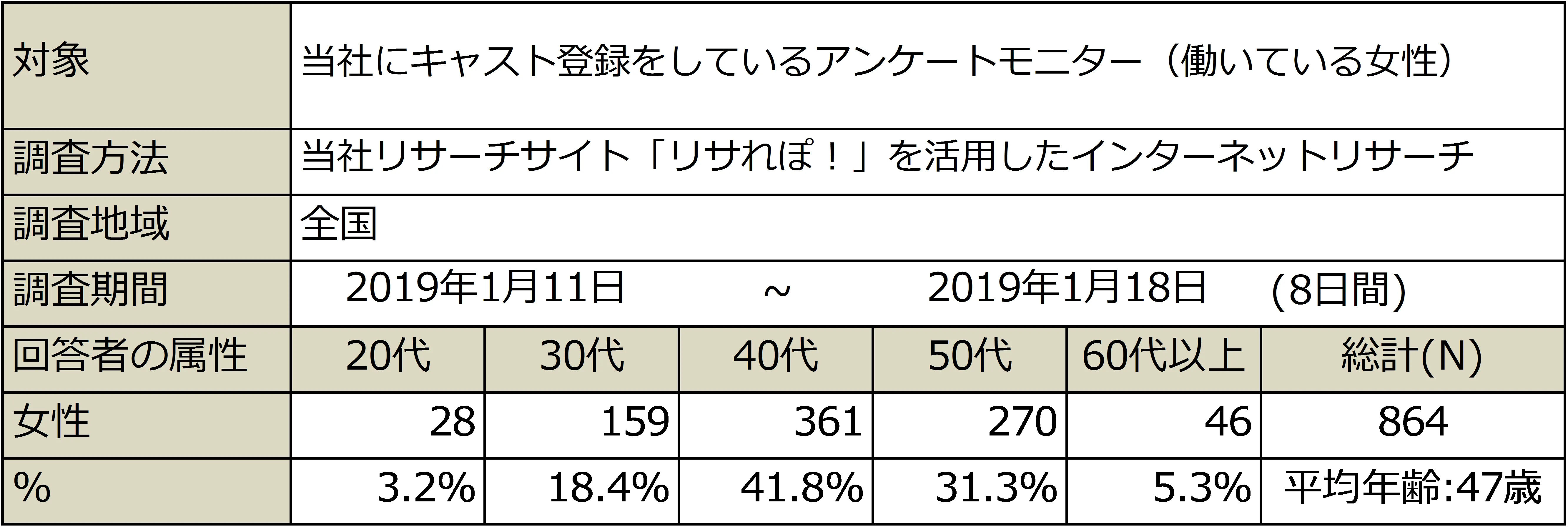 アンケートの対象は、当社に登録するキャスト会員で、有効回答数は864名(平均年齢47歳)、実施期間は2019年1月11日~1月18日です。(調査概要は5ページに記載)