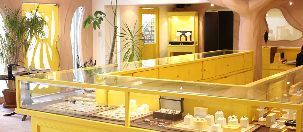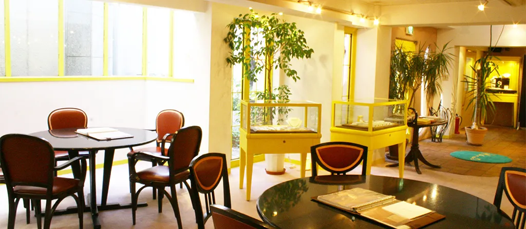 20年という節目を迎える自由が丘店の改装では、これまでメインカラーとして使用してきた黄色を挿し色に変更し、ショーケースや絨毯も落ち着いた色味にしました。リニューアルで完成ではなく、常に進化していきたいと考えています。